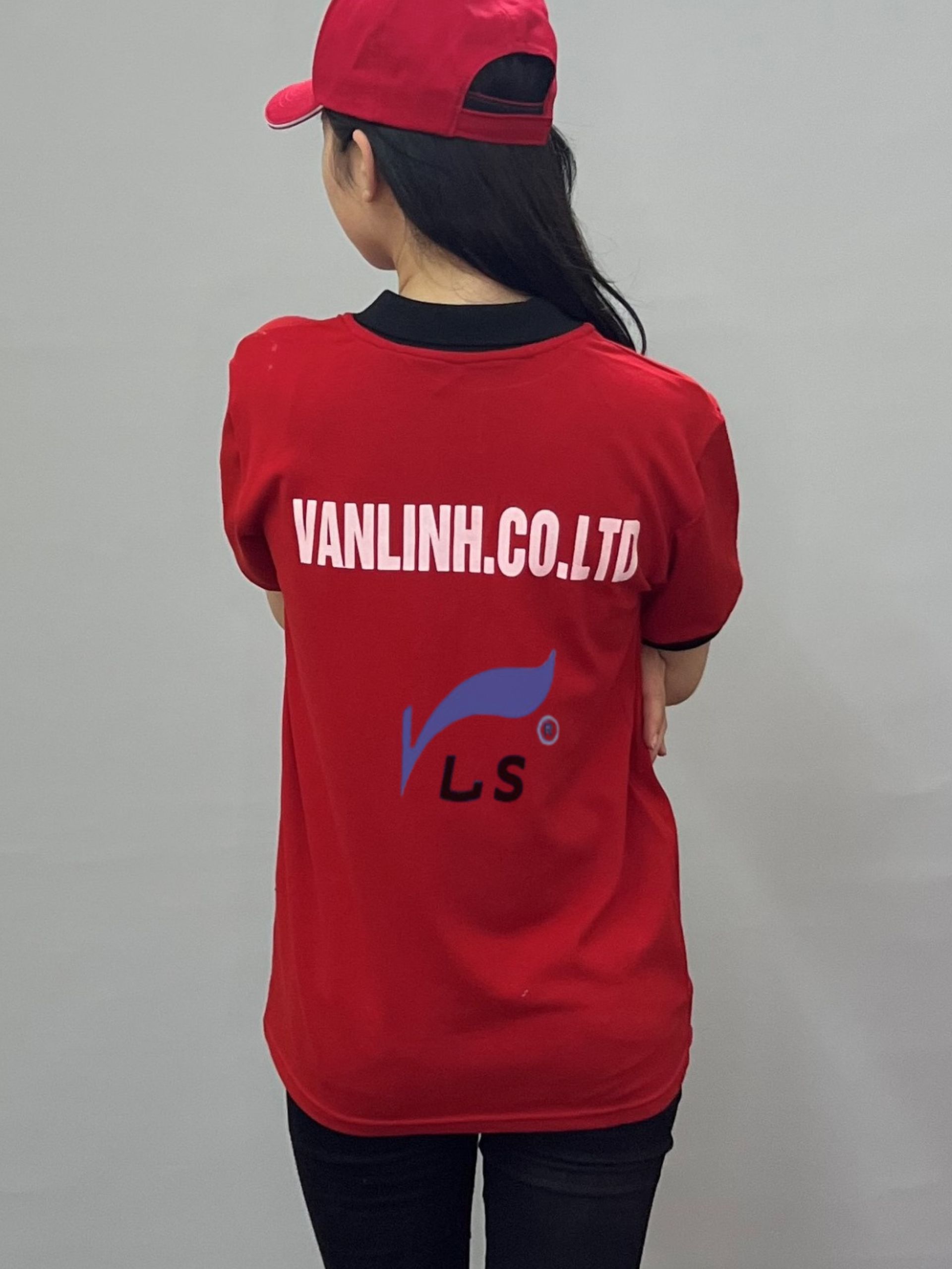 - Logo sau lưng: Kích thước lớn, nổi bật trên nền áo đỏ, giúp tăng độ nhận diện thương hiệu mạnh mẽ từ xa, đặc biệt trong các sự kiện đông người.